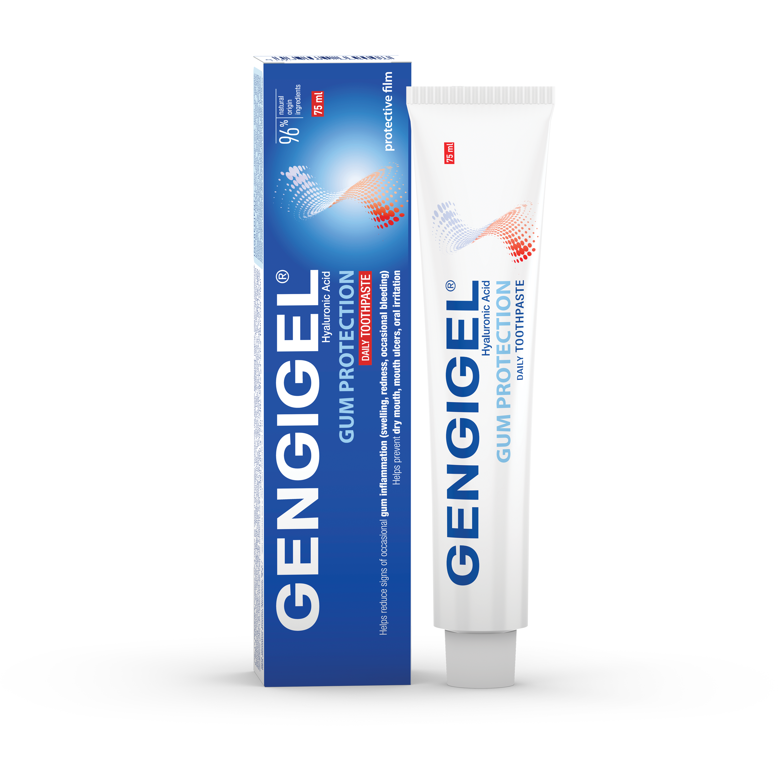 Die einzigartige Formulierung basiert auf Hyaluronsäure, die sehr der natürlichen Hyaluronsäure in der Mundschleimhaut ähnelt. Es hat die Fähigkeit das Gewebe des Zahnfleisches wiederherzustellen und es zu schützen, indem es – dank einer patentierten mukoadhäsiven Formel – einen langanhaltenden Schutzfilm auf dem Zahnfleisch bildet.